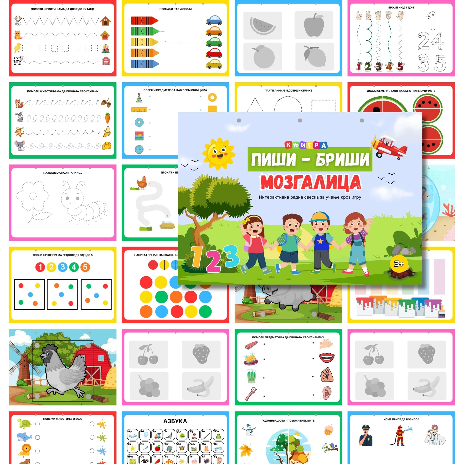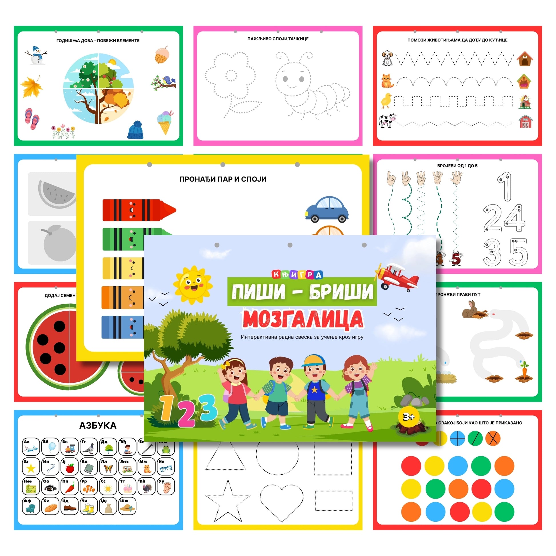 Učenje kroz igru je sada zanimljivije nego ikad! Piši Briši Mozgalica je interaktivna radna sveska sa 23 stranice po kojima se može pisati, brisati i koristiti ponovo bezbroj puta.